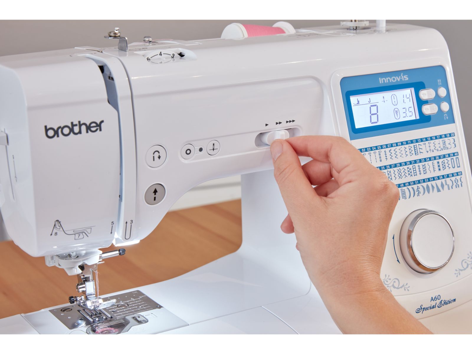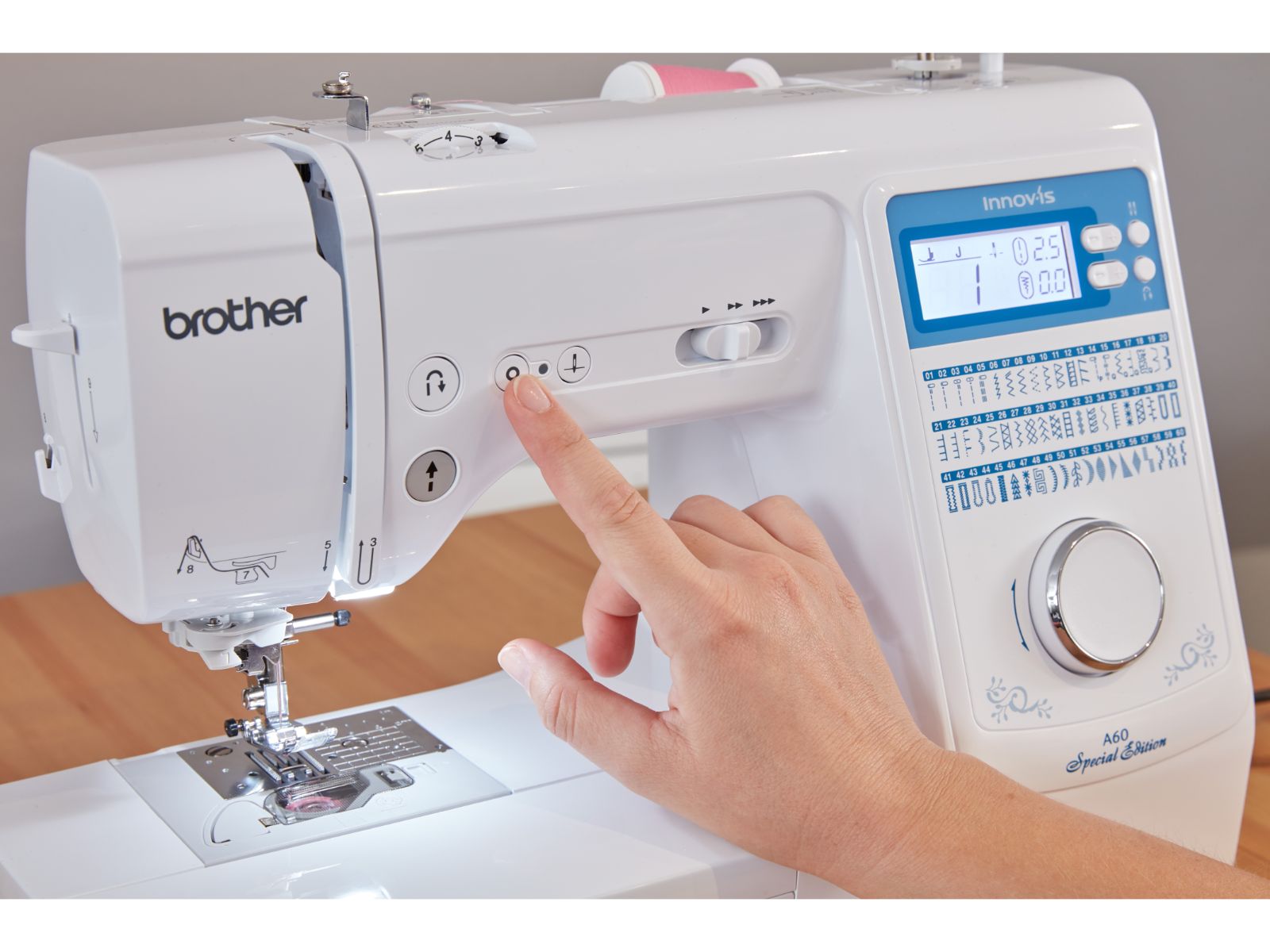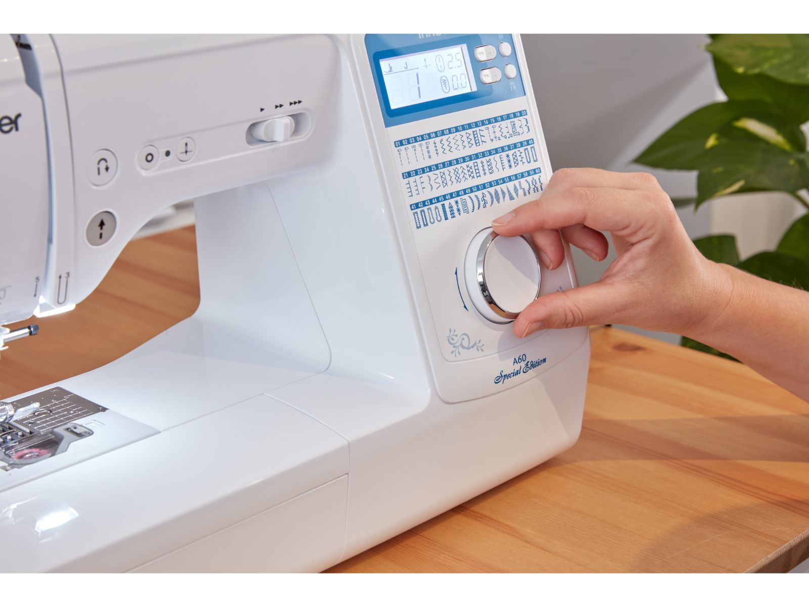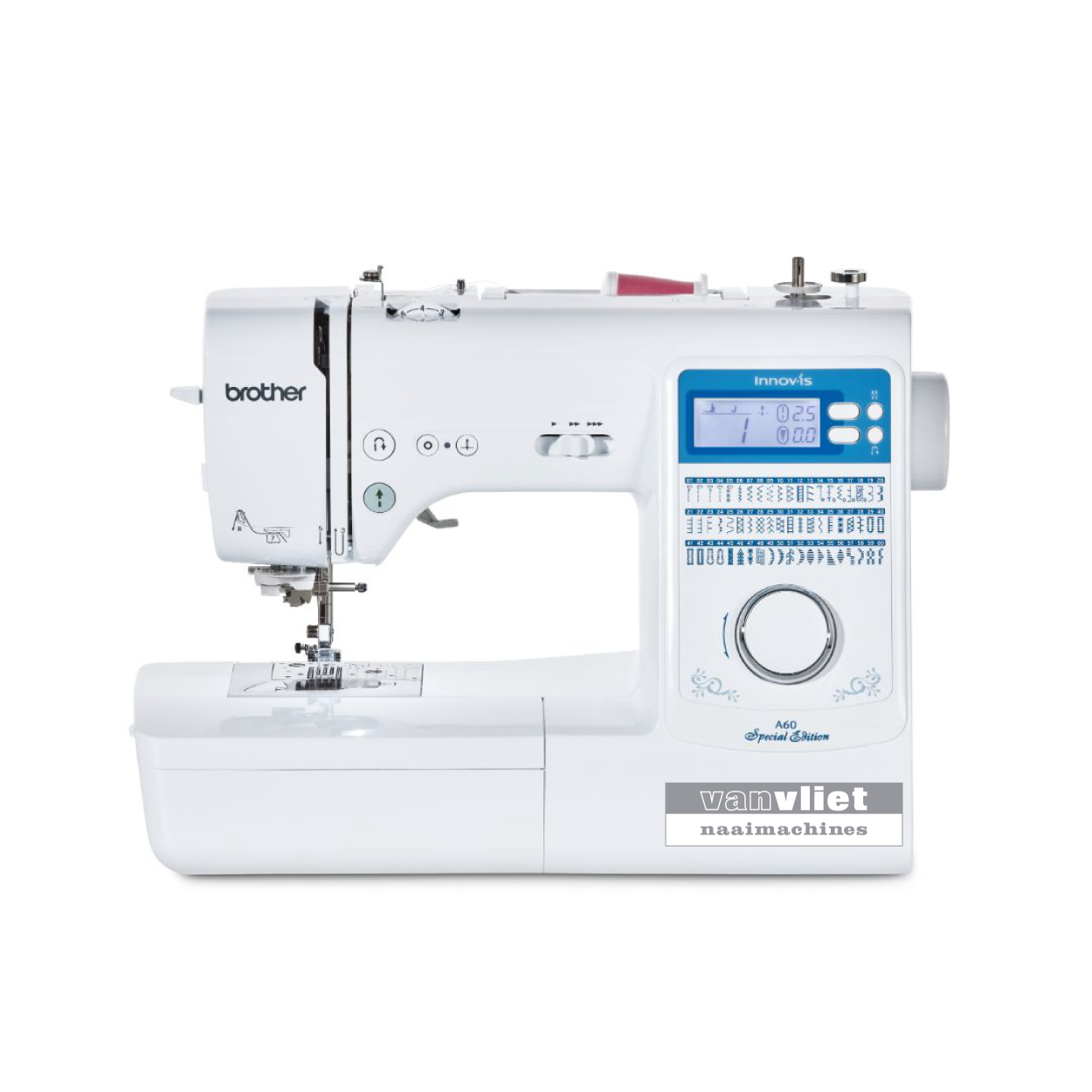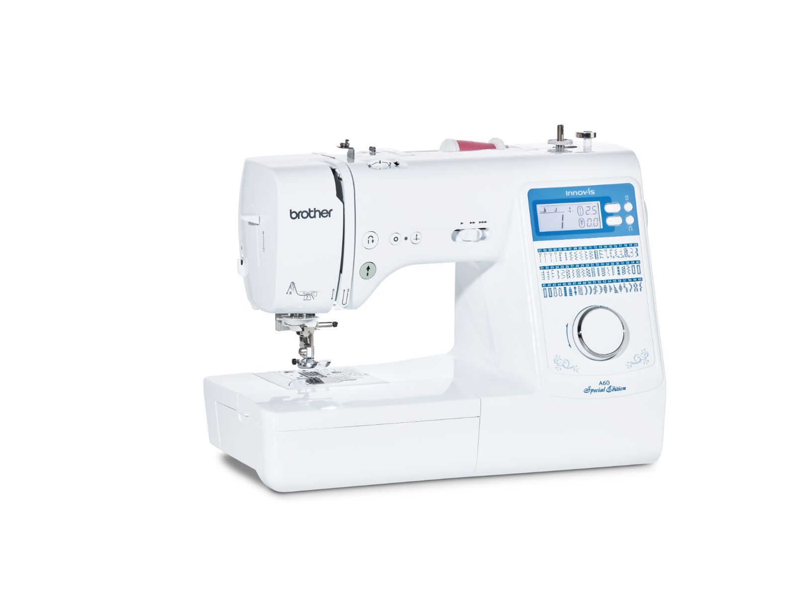 De Brother Innov’is A60 SPECIAL EDITION is een gebruiksvriendelijke naaimachine met functies zoals een boven geladen spoeltje, een verstevigingssteektoets, een supersnelle draad-inrijger (in 1 handeling!) en een verfijnde draadspanningsregelaar. Hiermee zorgt de A60SE voor perfecte naairesultaten, of je nu net begint of al vele jaren naait.
